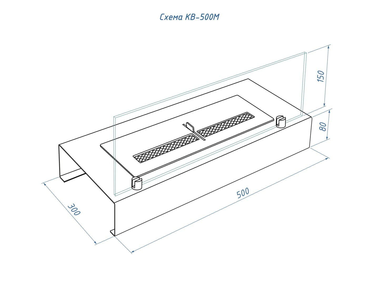 Представляет собой металлическую конструкцию с топливным блоком огражденным закаленным стеклом на дистанционных держателях, рекомендуется устанавливать в квартирах средней площади комнаты от 18 м2.