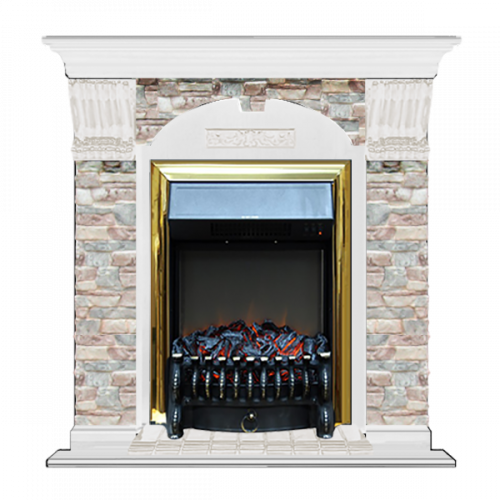 Каминокомплект Glenrich Арочный Грот цветной (белый)+Fobos Brass