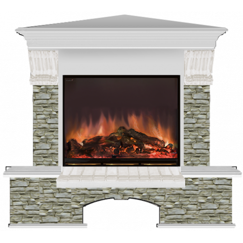 Каминокомплекты - наиболее приближенные к настоящему камину по внешнему виду. Такая конструкция является более сложной, габаритной. В собранном состоянии она является стационарным предметом, который состоит из очага, обрамленного декоративным порталом. По факту вы приобретаете уже готовое изделие, которое осталось лишь установить в выбранном месте и подключить к источнику электропитания.