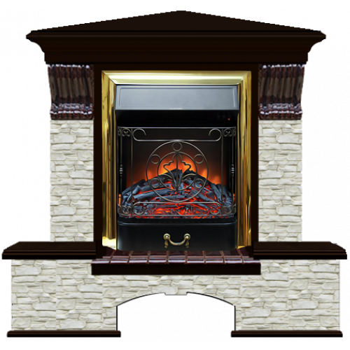 Каминокомплект Glenrich Бостон К Грот однотонный угловой (венге)+Majestic Brass
